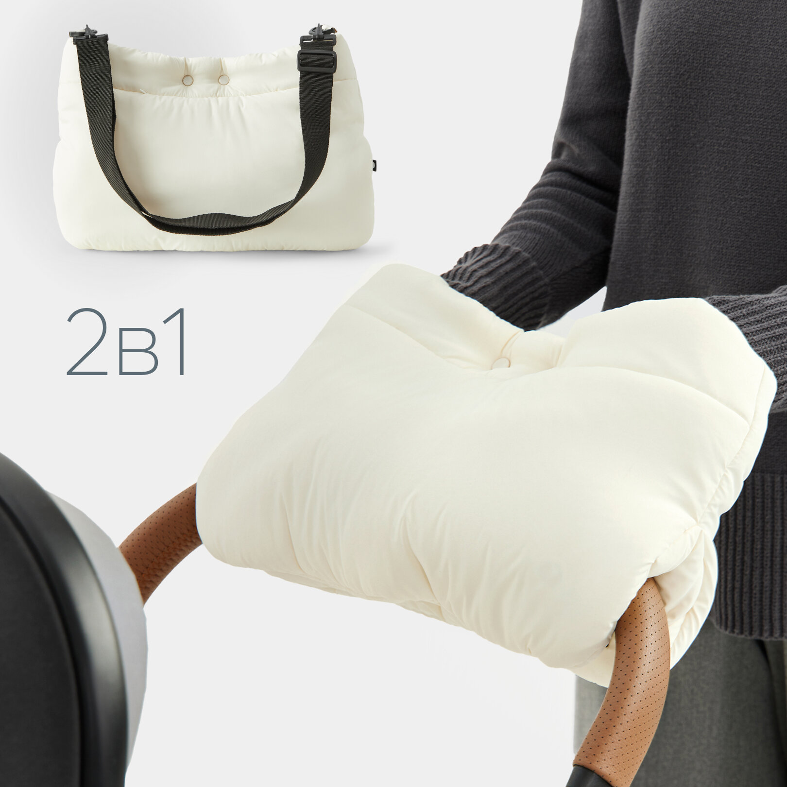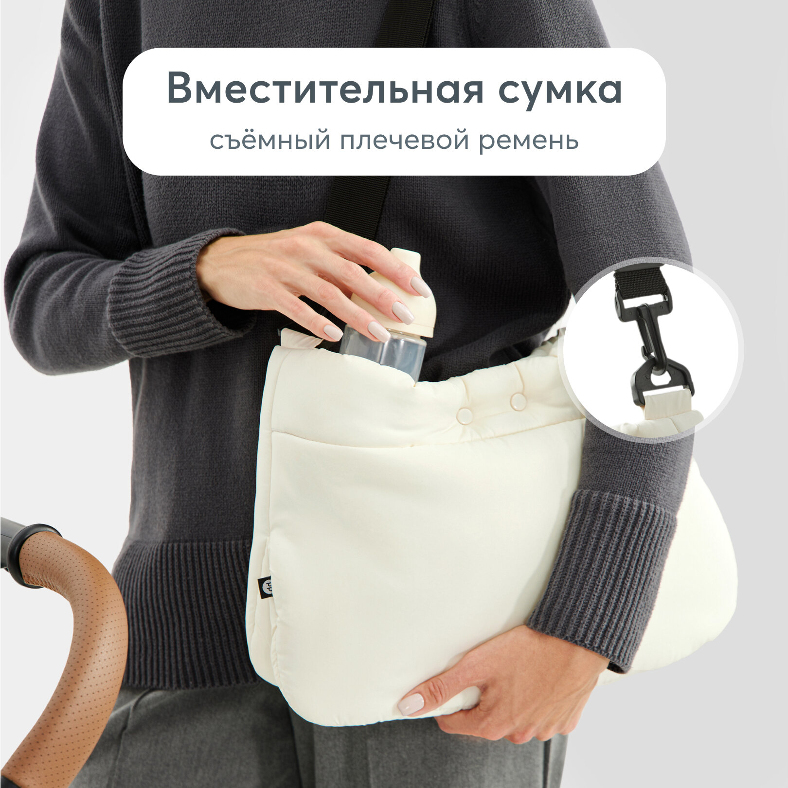 10 цен на 40081, Муфта-сумка для коляски Happy Baby, зимняя, водонепроницаемая, утепленная, молочная