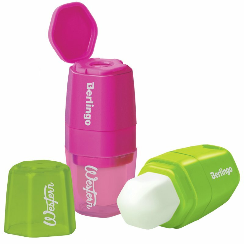 Отзывы на Точилка ручная пластиковая с ластиком Berlingo Western (1 отверстие, с контейнером) 1шт. (BLc_00140)