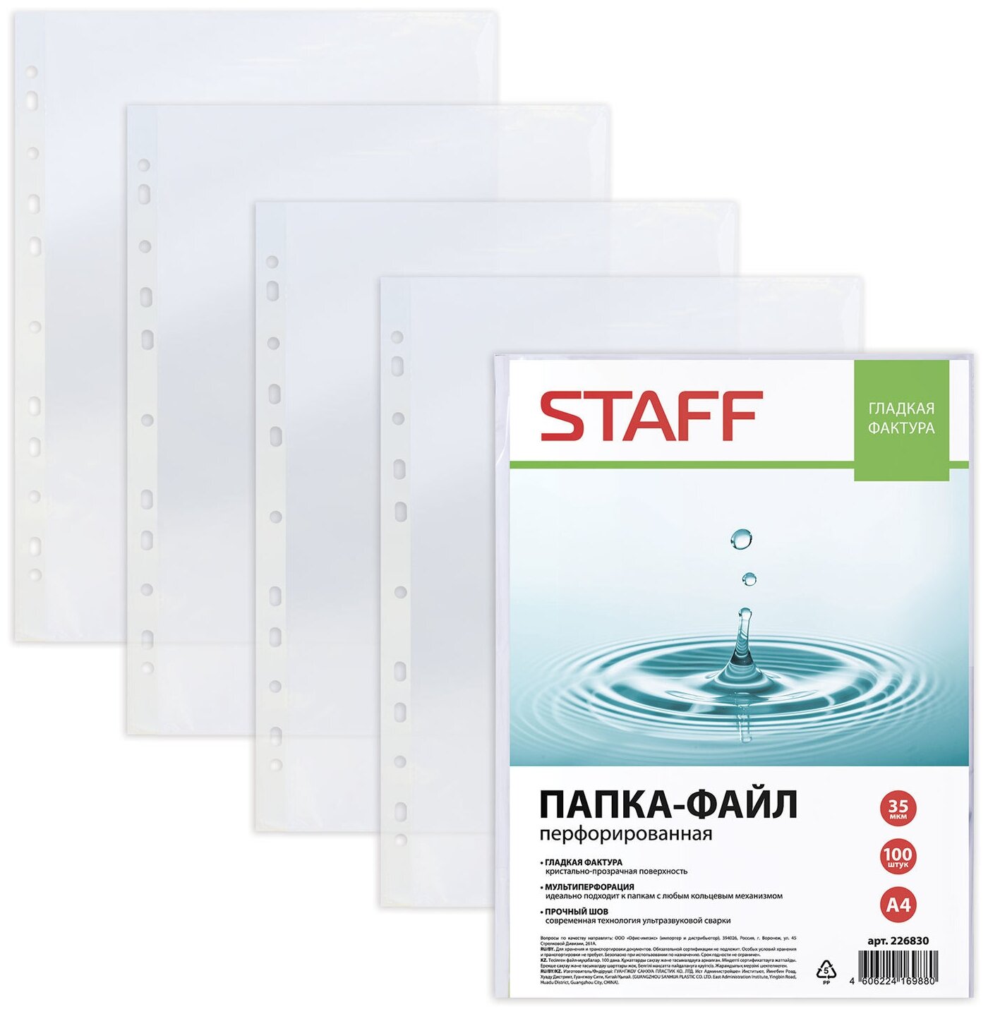 Папки-файлы перфорированные А4 STAFF "эконом", комплект 100 шт., гладкие, 35 мкм, 226830 информация: