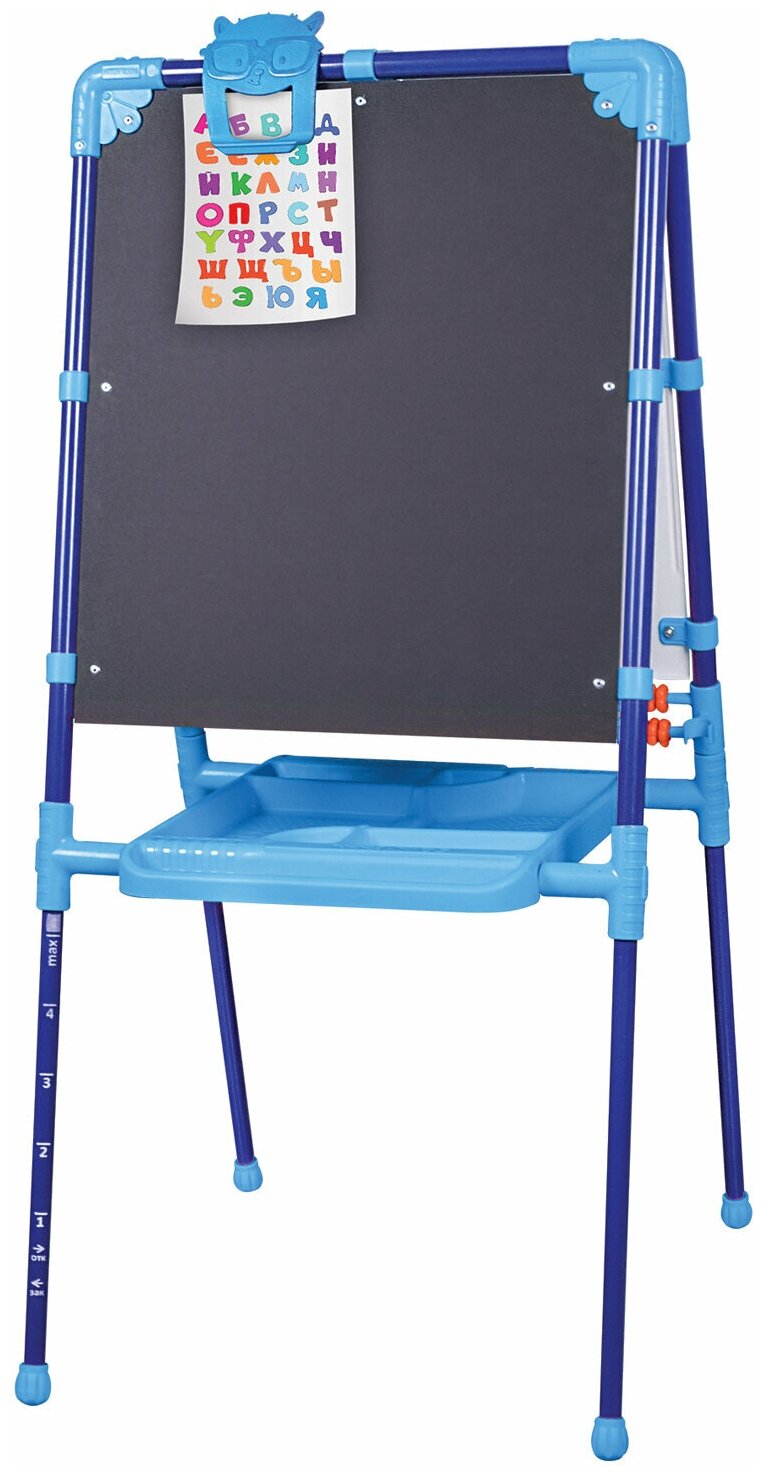 Мольберт для рисования детский напольный растущий двухсторонний для мела / магнитно-маркерный 53х46 см, Brauberg Nika Kids, синий, 238049