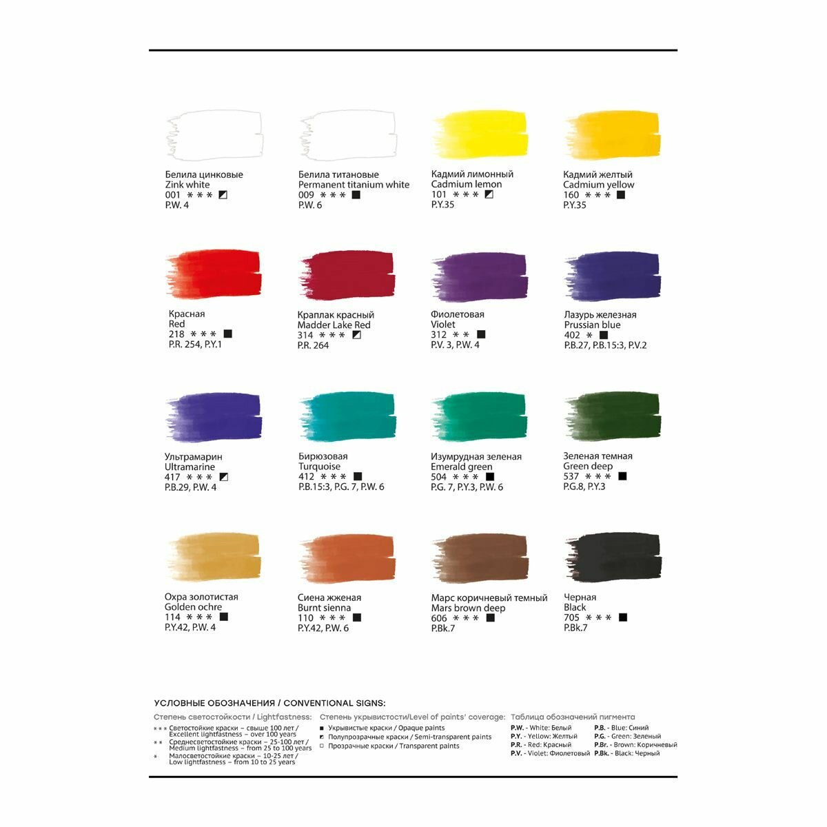 Гуашь художественная Гамма "Старый мастер", 16 цветов, 20мл/банка информация: