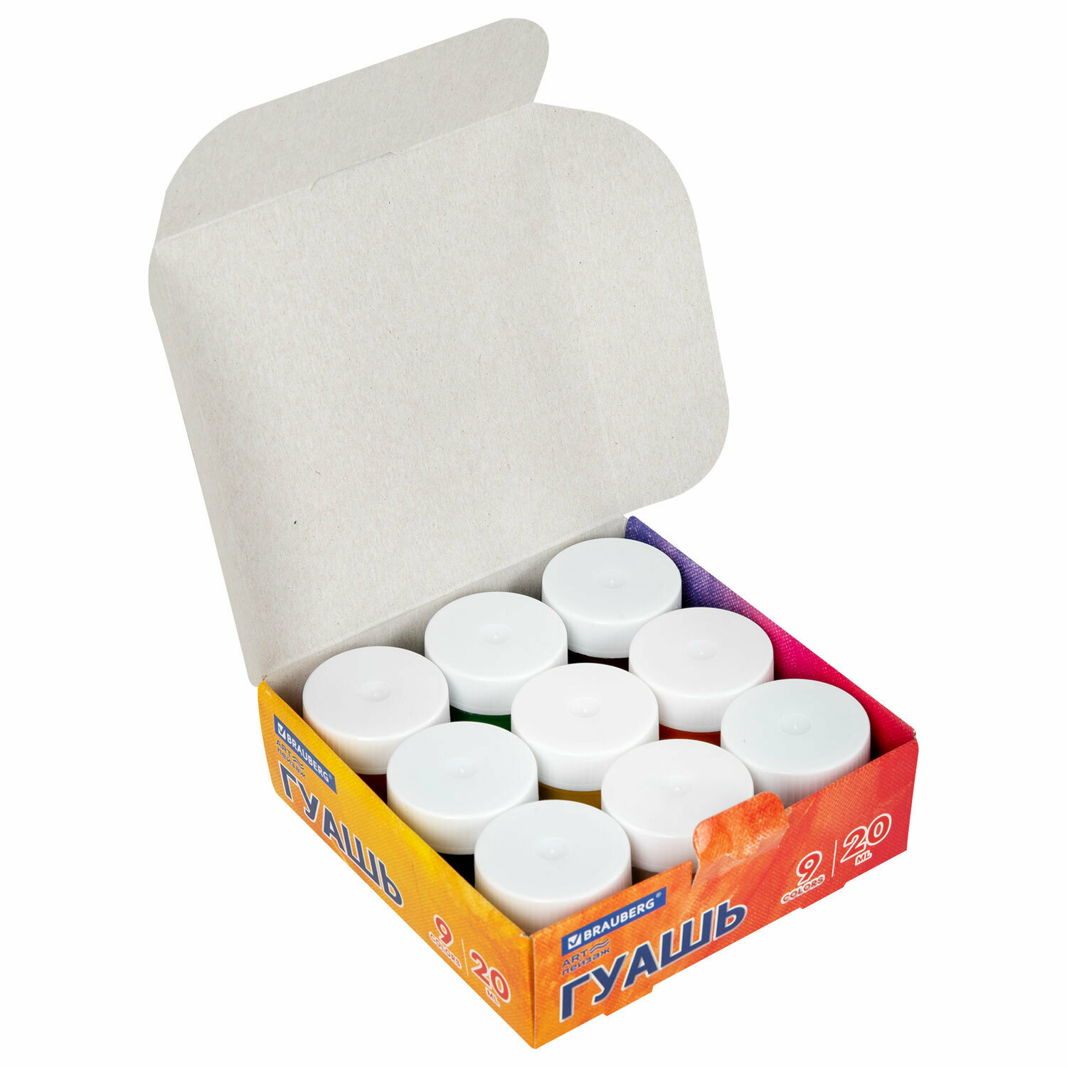 Гуашь BRAUBERG "ART пейзаж", 9 цветов по 20 мл, 192556 457 ₽