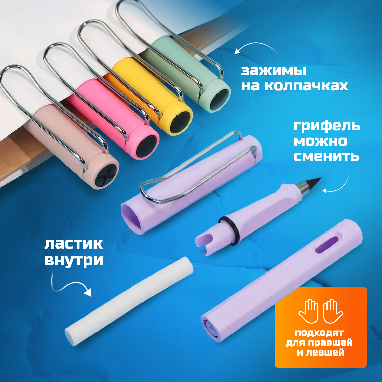| Особенности | для левшей / заточенные / с ластиком |