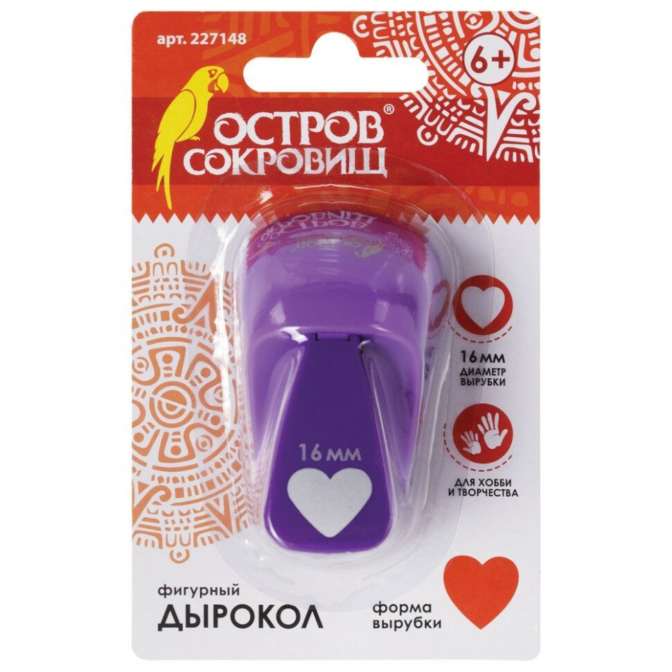 10 цен на Дырокол фигурный "Сердце", диаметр вырезной фигуры 16 мм, остров сокровищ, 227148, - Комплект 3 шт.(компл.)