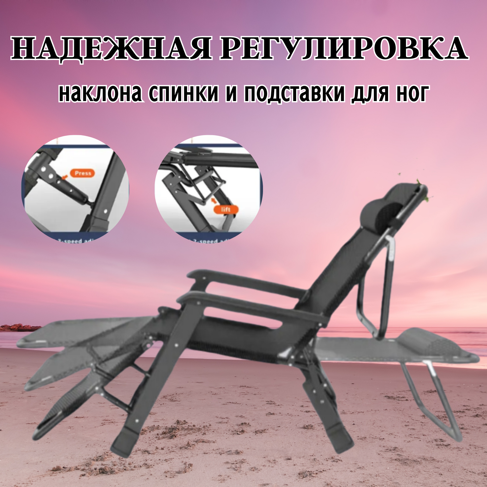 Кресло складное / Кресло-шезлонг туристическое / Раскладушка для дома и дачи / Лежак для кемпинга / Шезлонг 3 в 1 / черный информация: