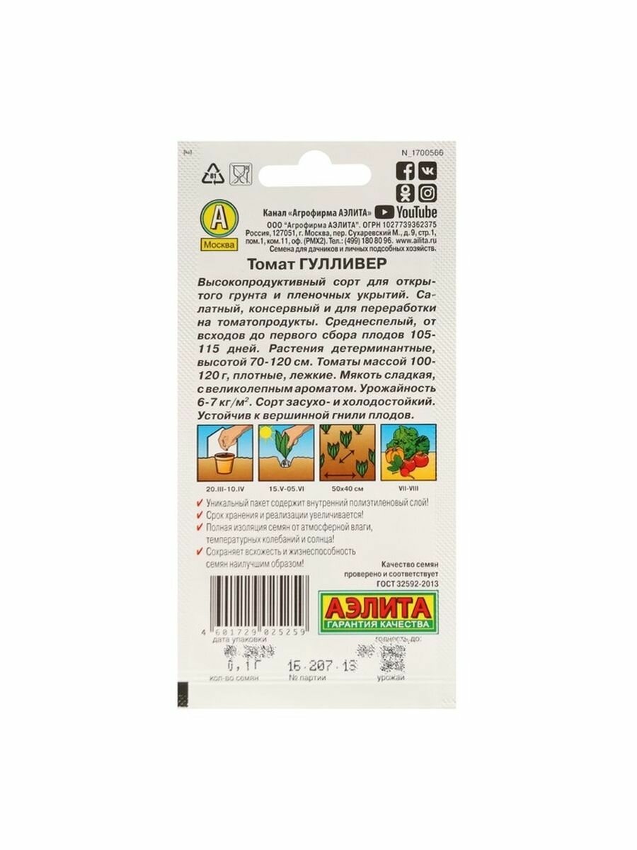 Семена Томат Гулливер 20 шт Дет (Аэлита) информация: