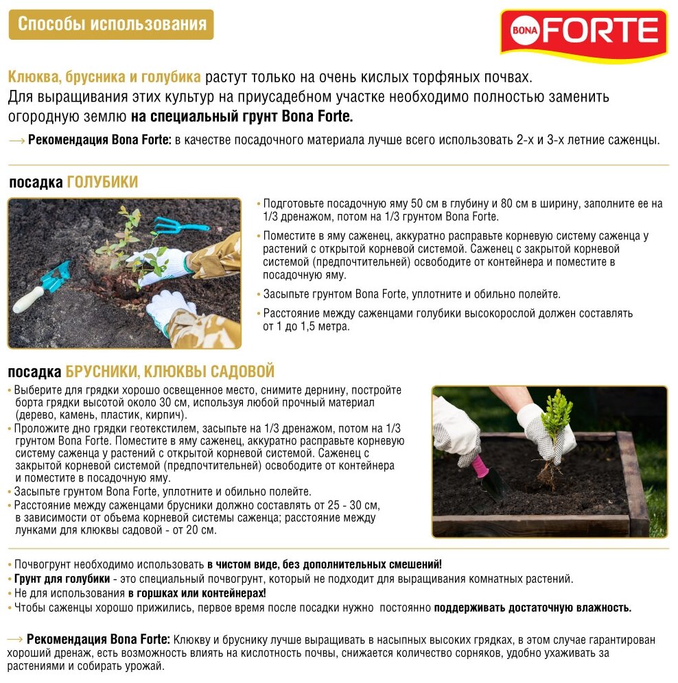 | Состав | Аэрационный почвогрунт для голубики и лесных ягод Bona Forte, 20 л |