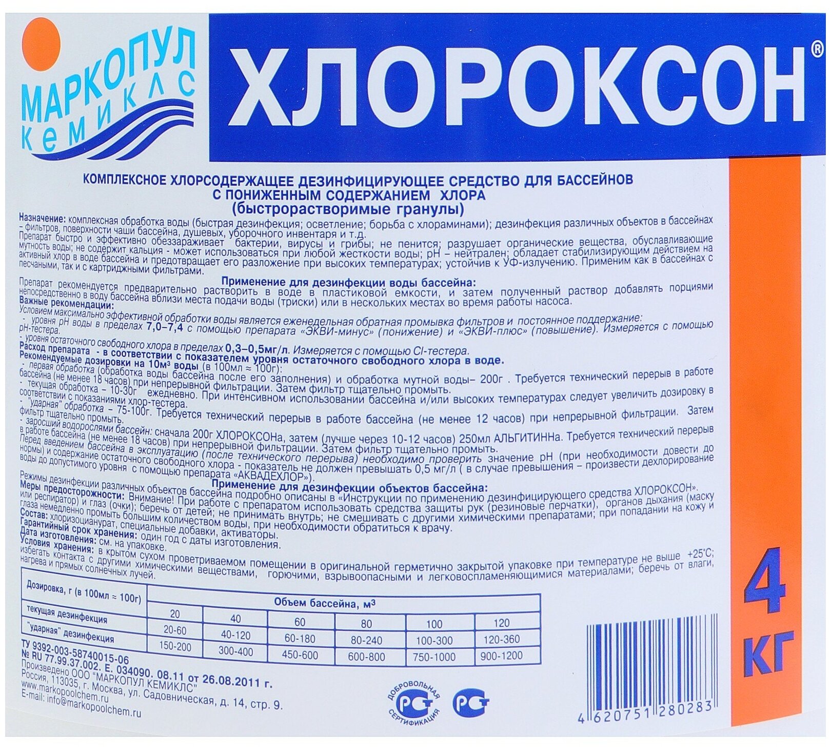 Маркопул Кемиклс на основе хлора Хлороксон комплексное средство, ведро 4 кг информация: