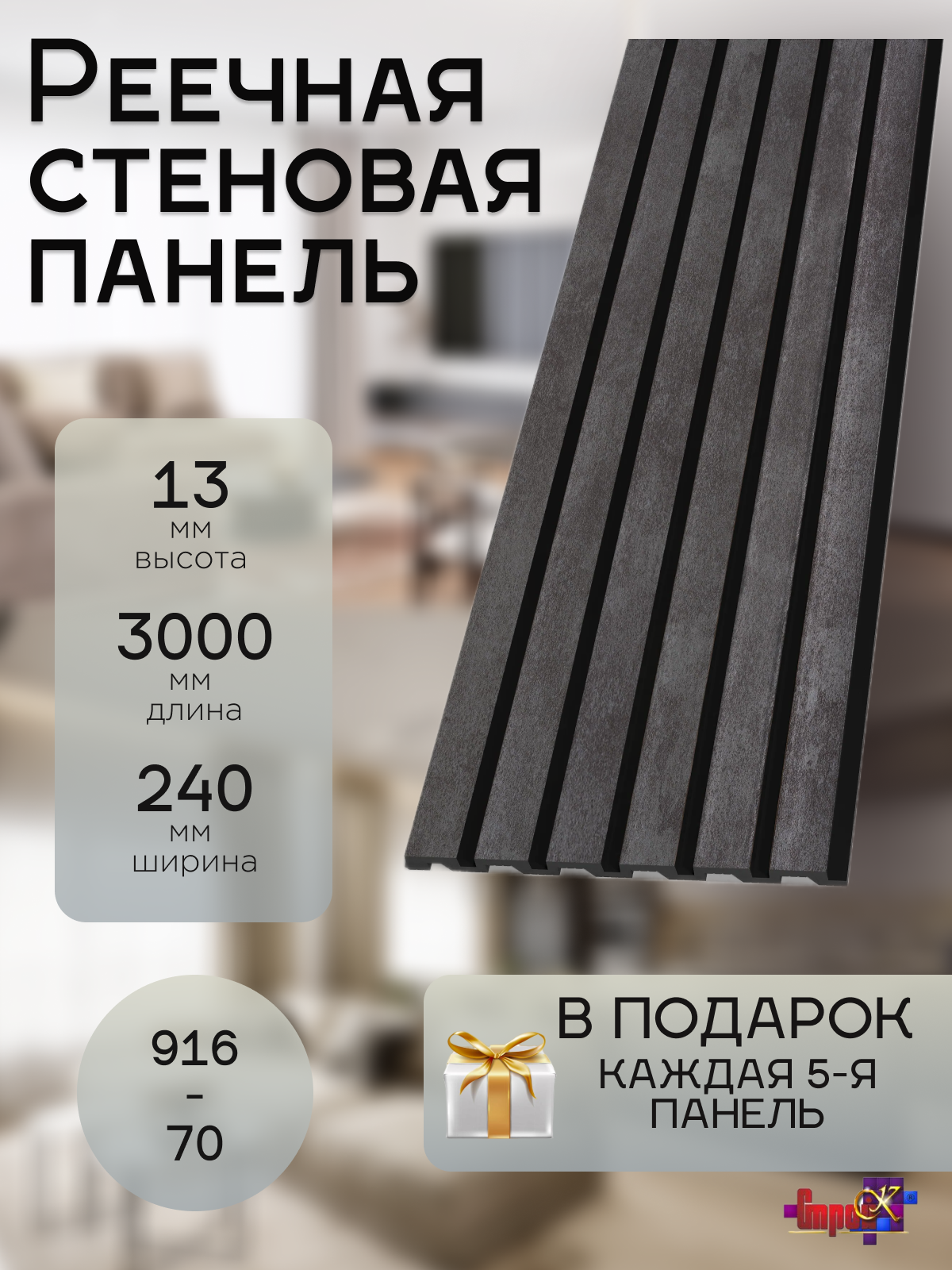 Панель стеновая 916-64SH 3 метра, 1 шт + каждая 5-Я панель В подарок! 4 655 ₽
