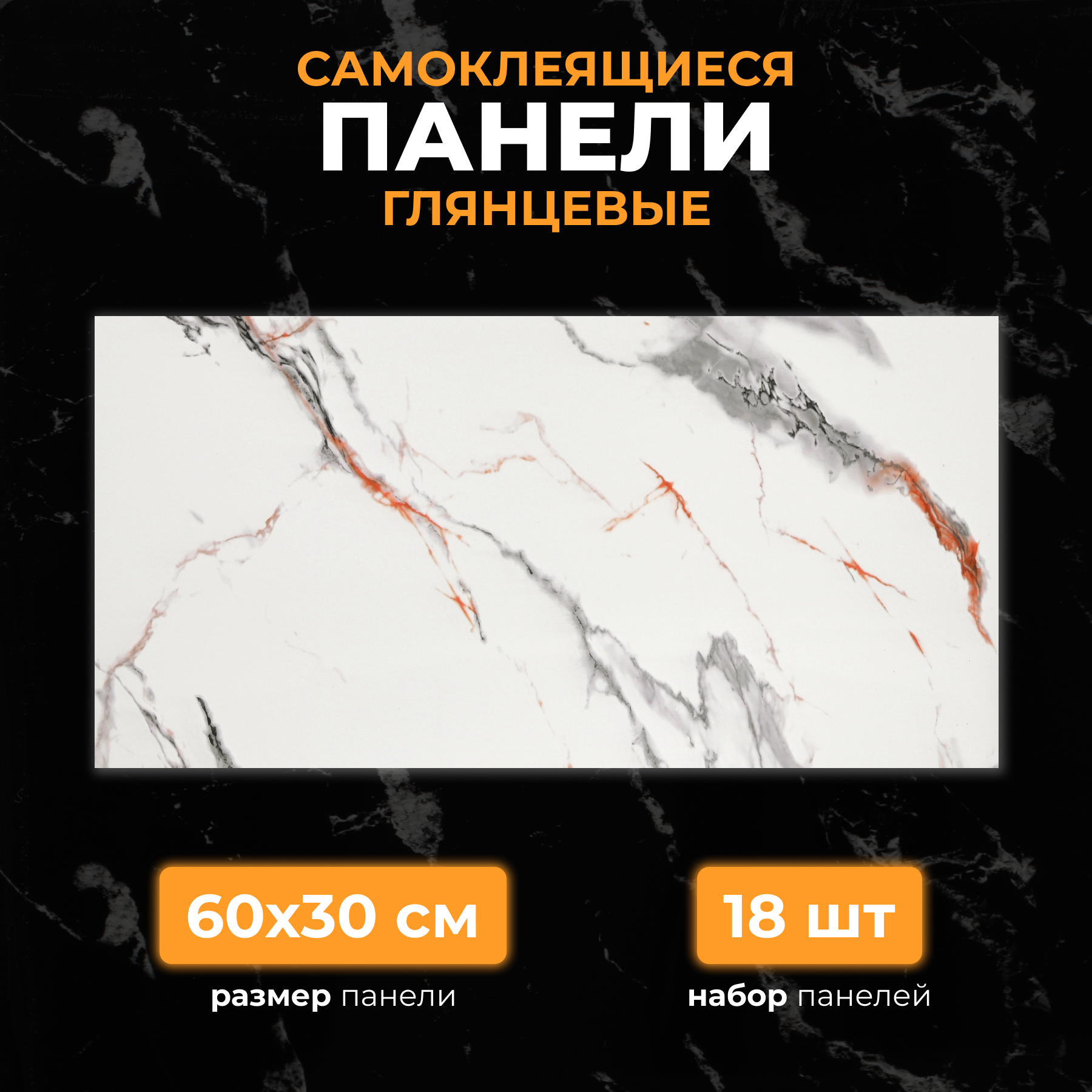 Белый мрамор, 60х30 см плитка глянцевая, самоклеющиеся панели для стен, декор для дома на кухню, в ванную (арт. 119) 18 шт. информация: