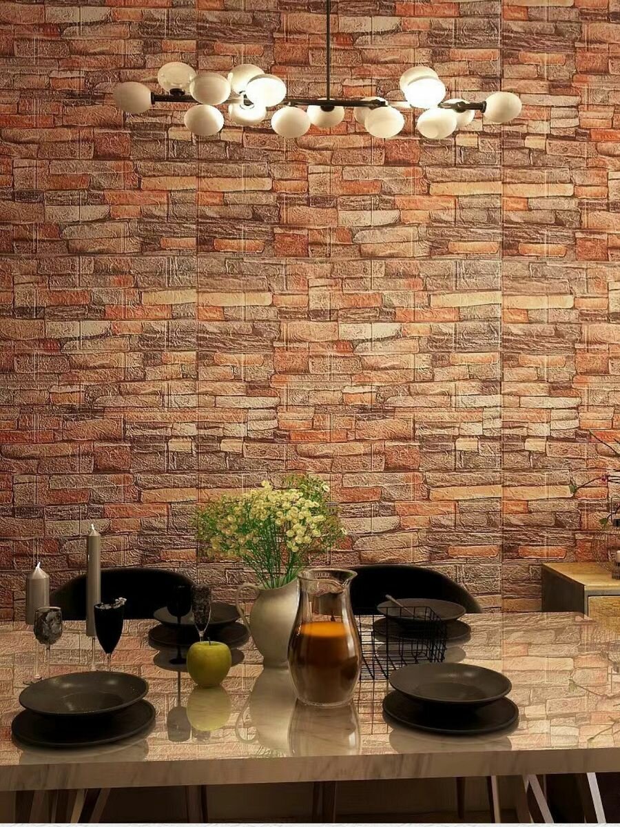 Отзывы на Самоклеящиеся панели 3D "Оранжевый кирпич" 35см*38 см 20 штук/Блоки ПВХ для ремонта стен/Плитка для декора и интерьера