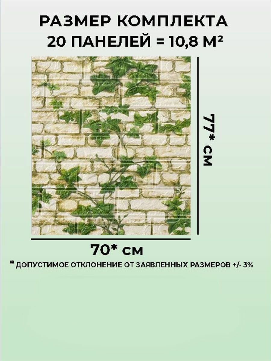 10 цен на Стеновые панели самоклеющиеся 70х77 см 3D влагостойкая панель в комплекте 20 шт. "Бежевый плющ"