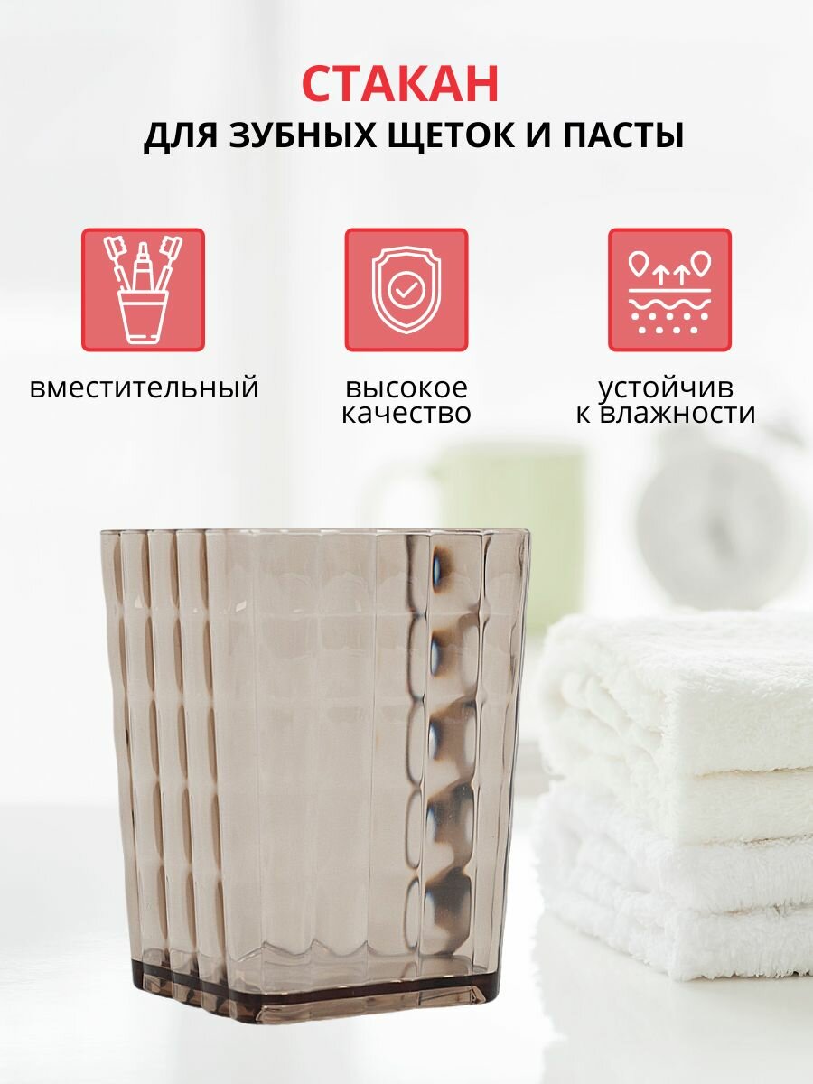 Подставка для зубных щеток и пасты, держатель для ванной, стакан для хранения зубной щетки Альтернатива Кристалл, тонированный, 2 шт 379 ₽