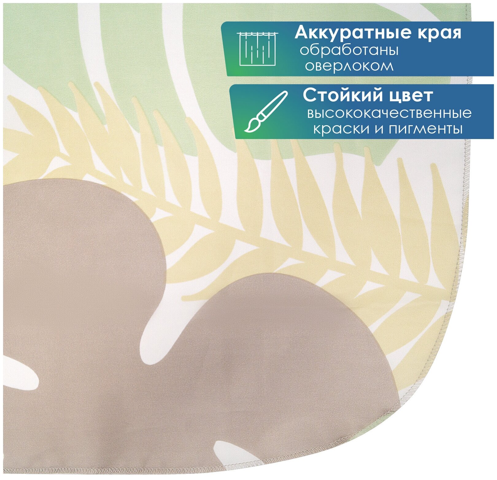 Штора для ванной комнаты VILINA тканевая с рисунком водоотталкивающая с кольцами 180х180см занавес в душевую Пальмовые листья