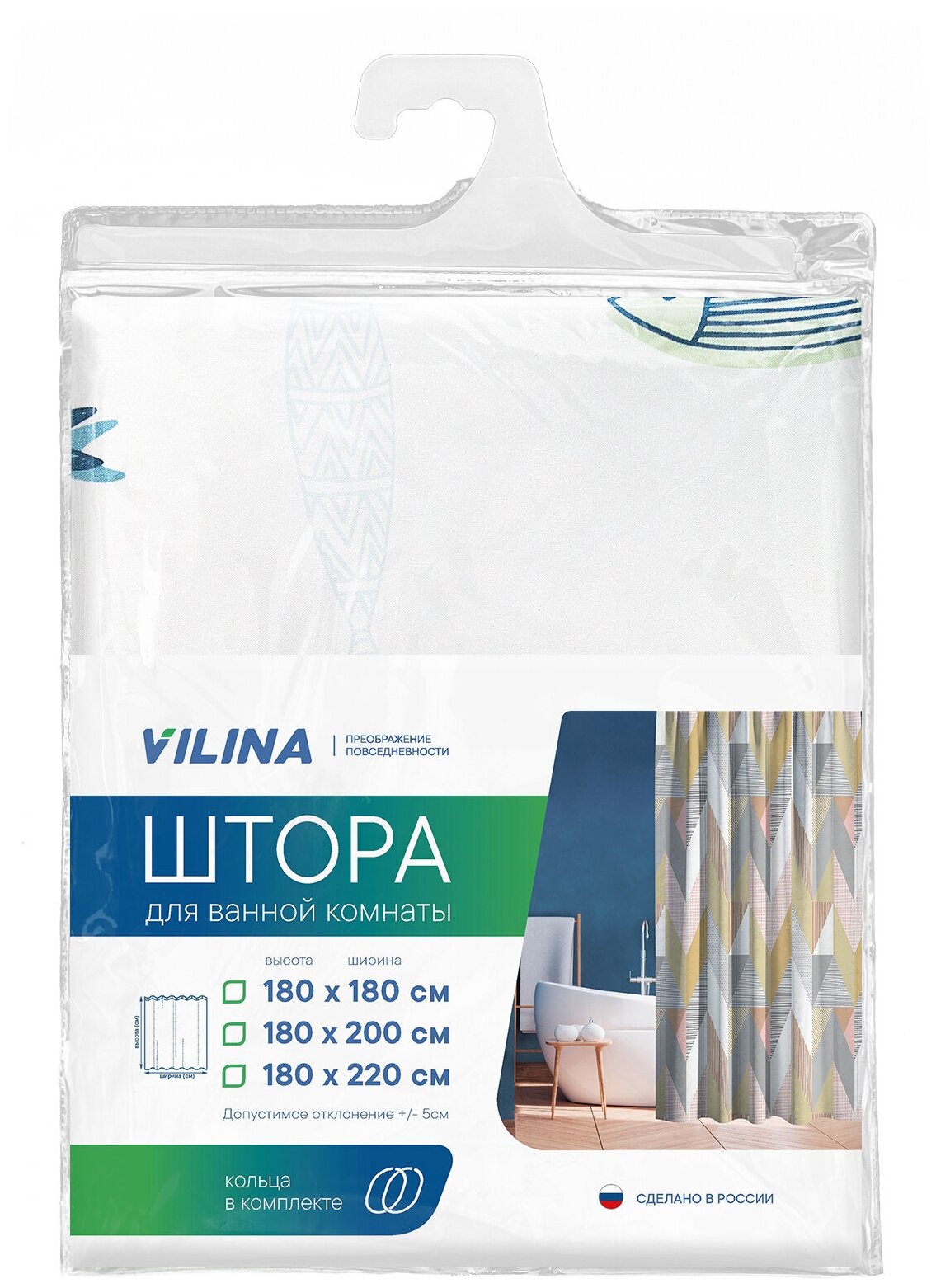 Штора для ванной комнаты VILINA тканевая с рисунком водоотталкивающая с кольцами 180х180см занавес в душевую Аквариум информация: