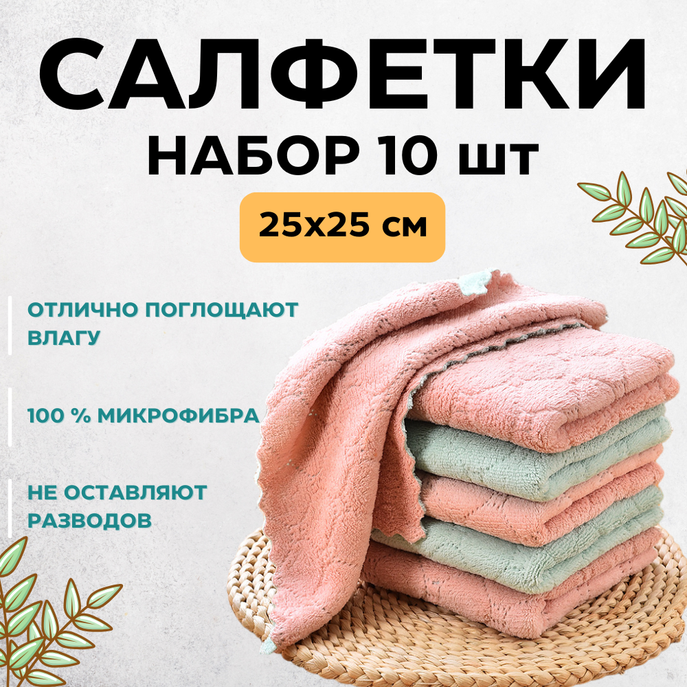 Универсальная салфетка из микрофибры для уборки, 25х25см, 10шт информация: