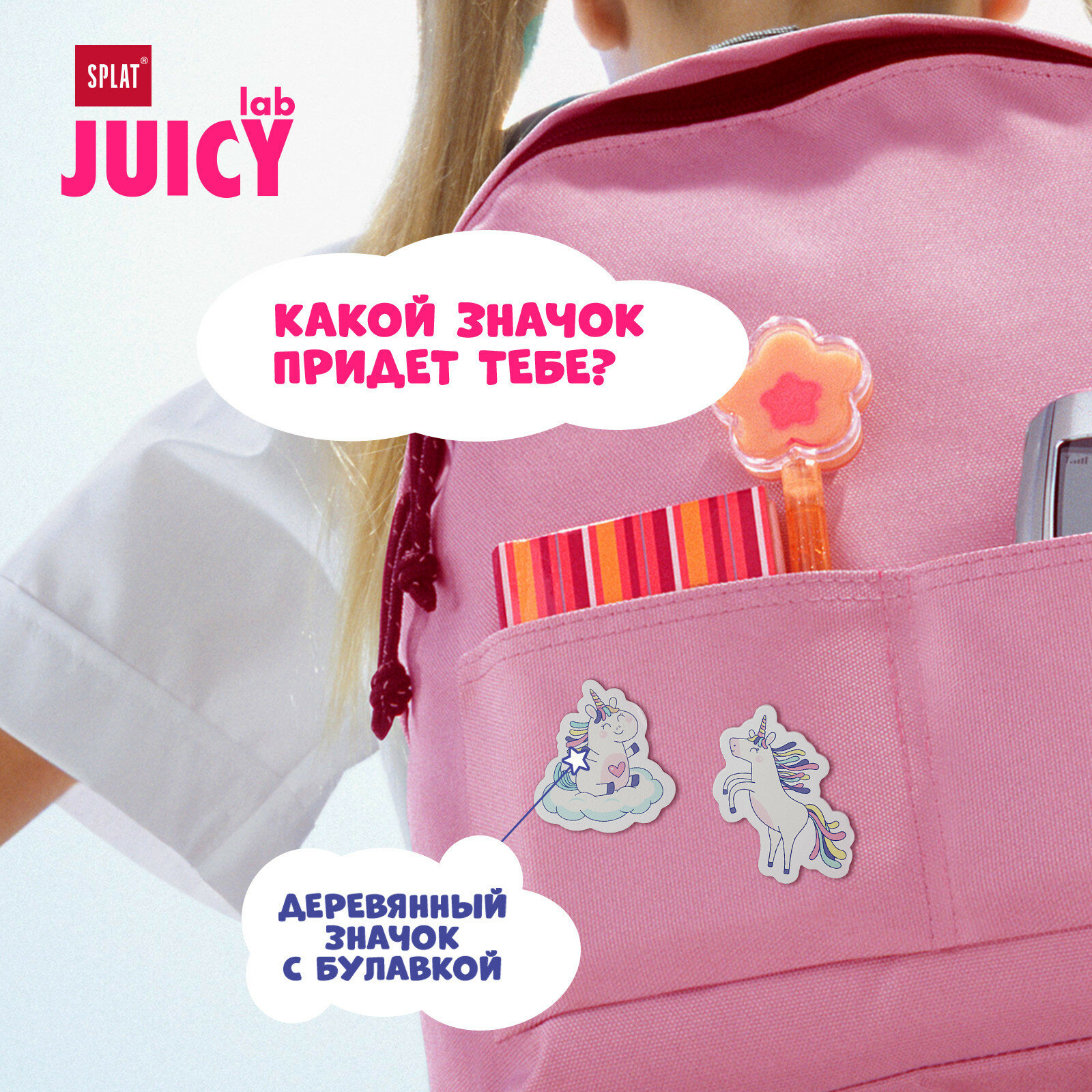 Детская зубная щетка Splat JUICY LAB Магия единорога с ионами серебра, жемчужная