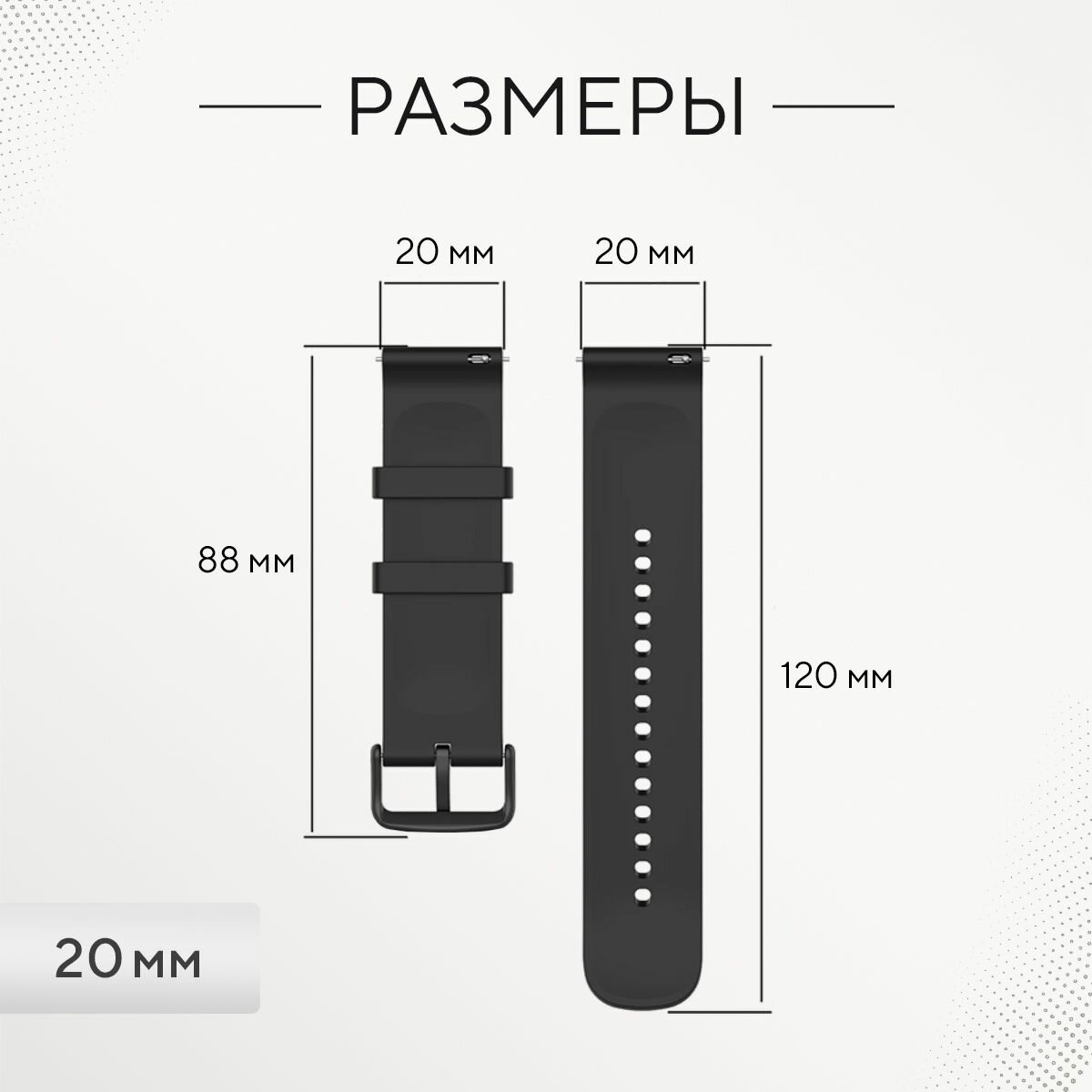 Силиконовый ремешок для смарт часов 20 мм WatchMe / Браслет для умных smart watch 20мм / Ремень для женских, мужских смарт-часов Colmi, Xiaomi Amazfit, Garmin, Samsung, Honor информация: