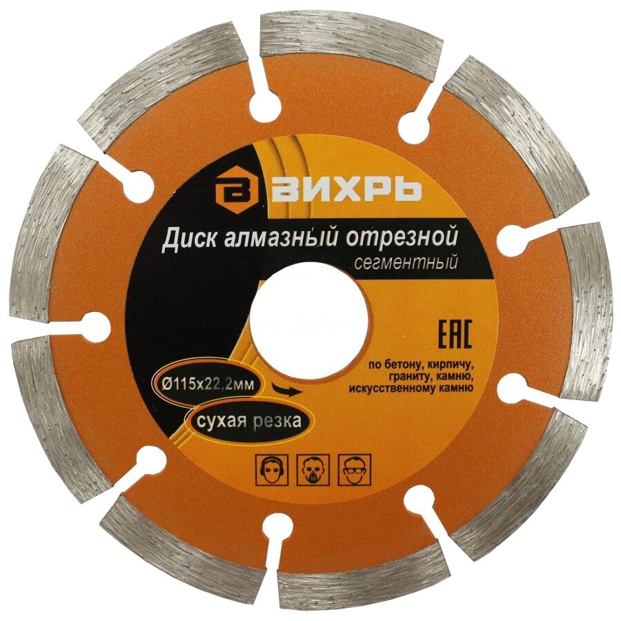 | Дополнительная информация | Диск алмазный сегментный отрезной 115х22,2 мм «сухая резка» Вихрь алмазный диск для болгарки (УШМ), для штробореза 73/10/3/1 |