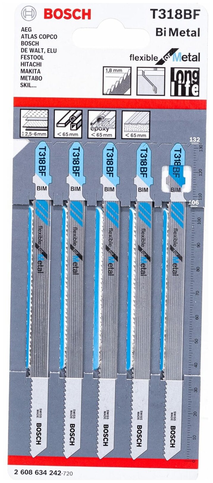 Пилки для электролобзиков Bosch Пилки по металлу Bosch Т318BF 5шт 2608634242 информация: