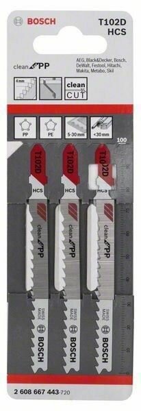 Пилки для лобзика 3шт Т102D CleanPP BOSCH 2608667443 информация:
