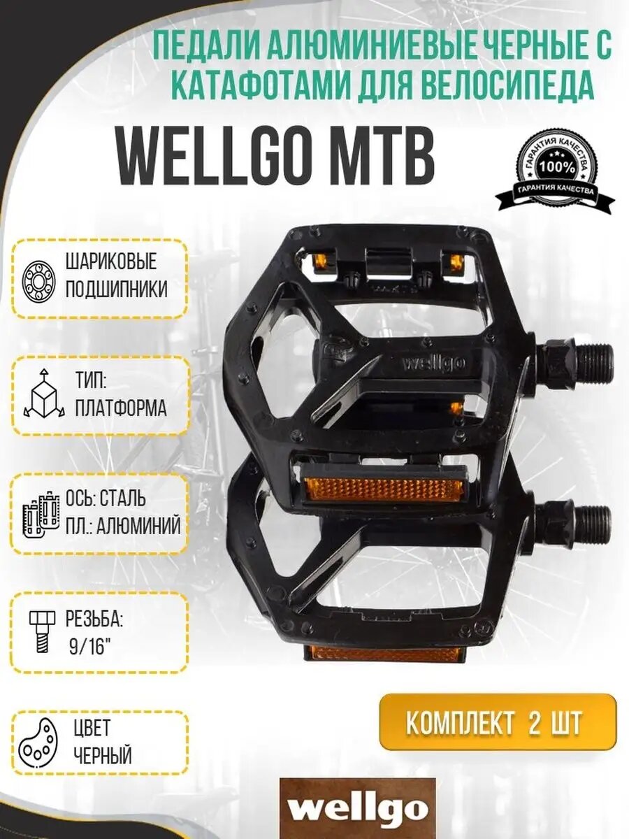 Педали 1 пара Велго алюминиевые 2603-47 MTB, 9/16 информация: