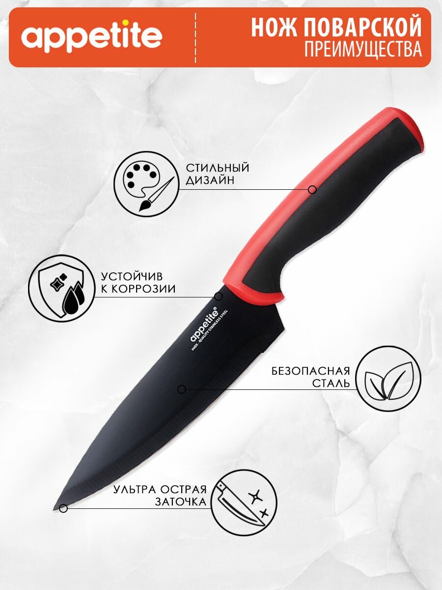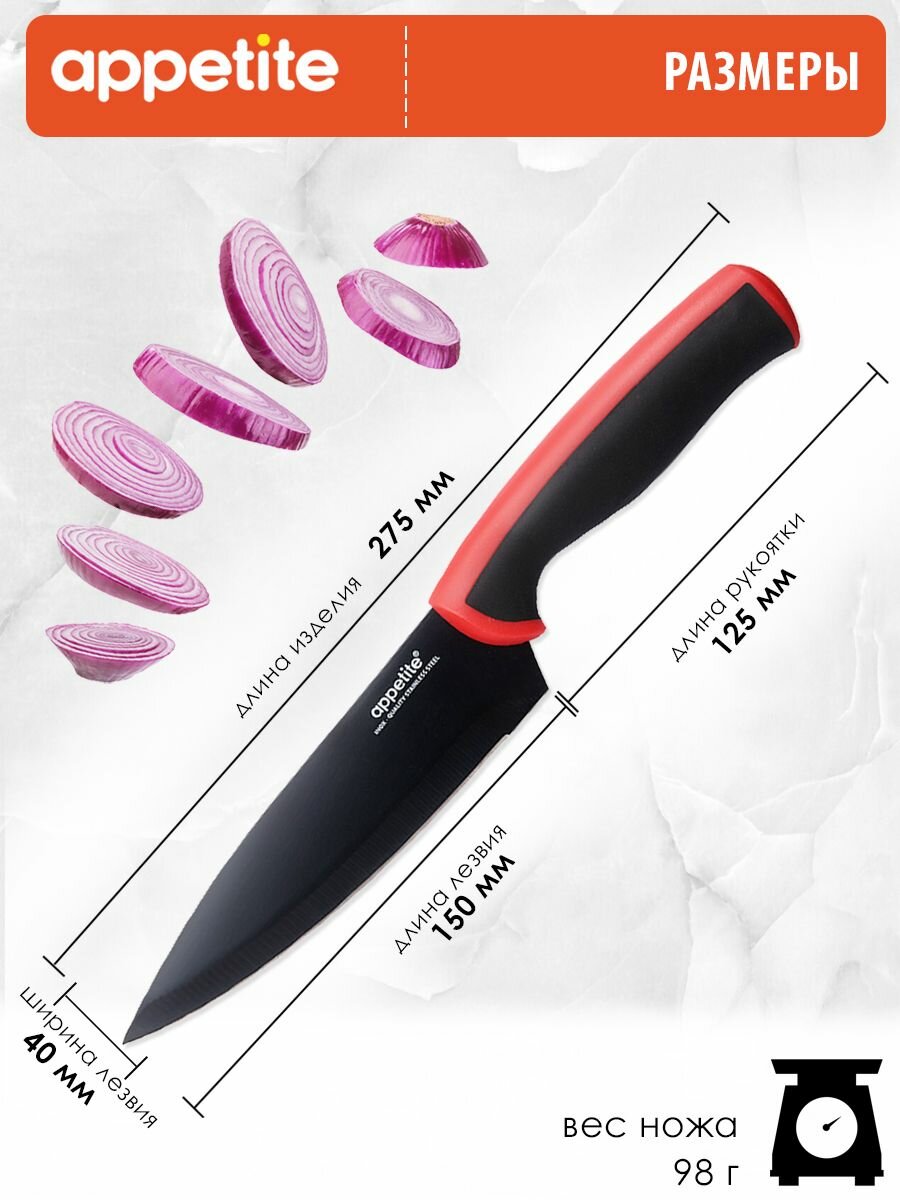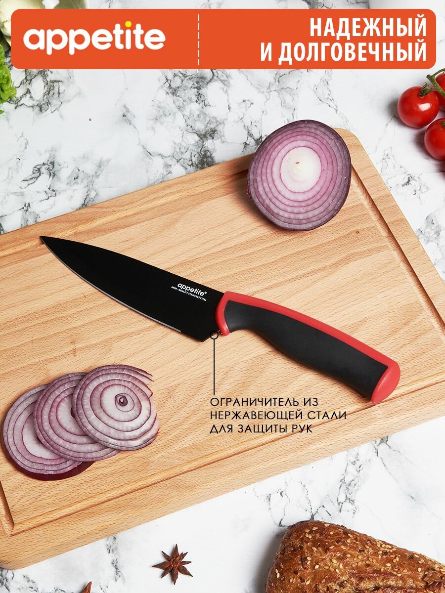 Отзывы на Нож из нержавеющей стали Эффект поварской 15см красный ТМ Appetite