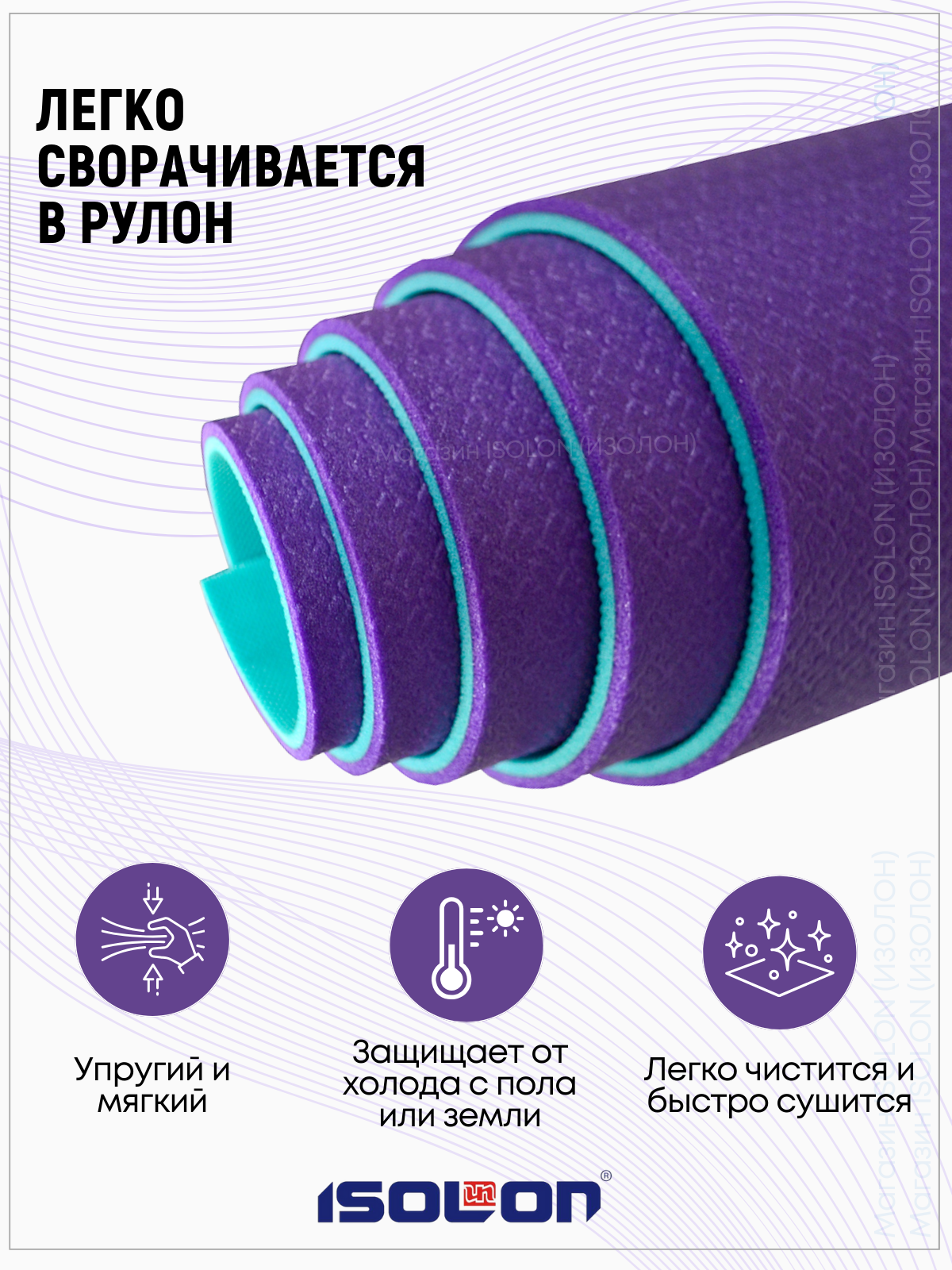 Коврик спортивный для фитнеса и йоги Спорт Универсал 8, 1800х600х8 фиолетовый/бирюзовый информация: