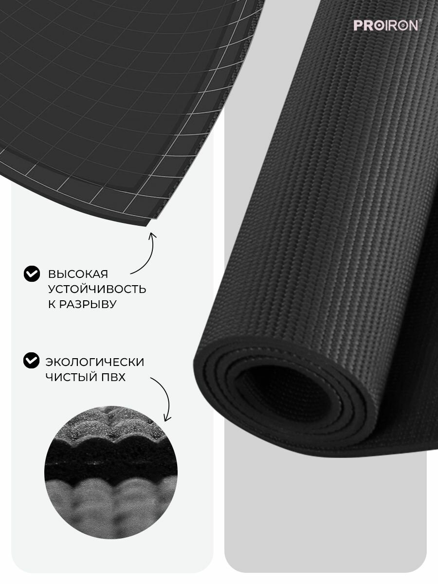 Коврик для фитнеса и йоги, PROIRON, нескользящий, размеры 1730*610*4мм, ПВХ, черный информация: