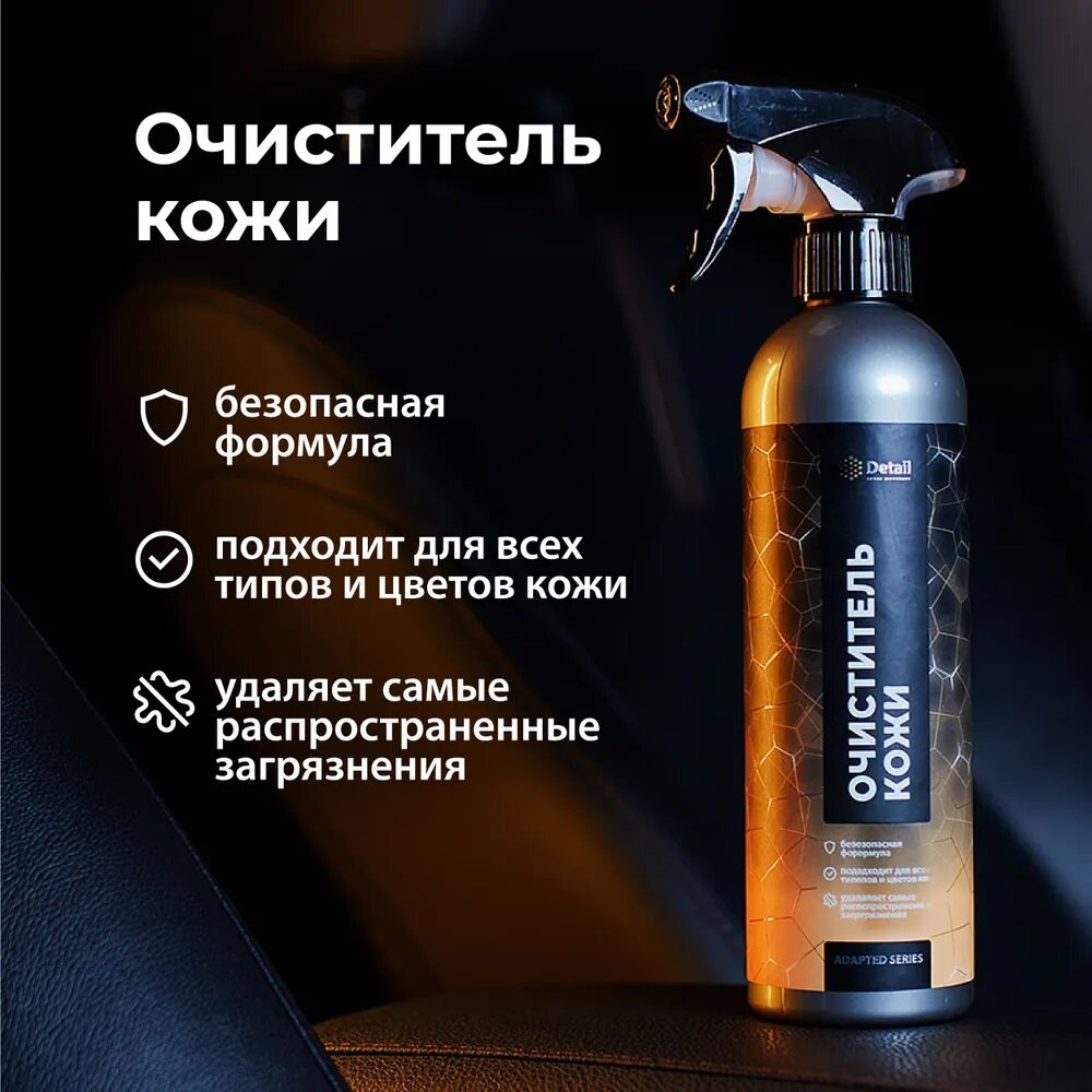 Мы выбрали 10 лучших цен на Очиститель кожи DETAIL "Leather Clean" 500 мл, Adapted Series Detail. Перед тем как купить Очиститель кожи DETAIL "Leather Clean" 500 мл, Adapted Series Detail посмотрите найденные предложения из Яндекс Маркета и других сайтов на основе XML фидов.