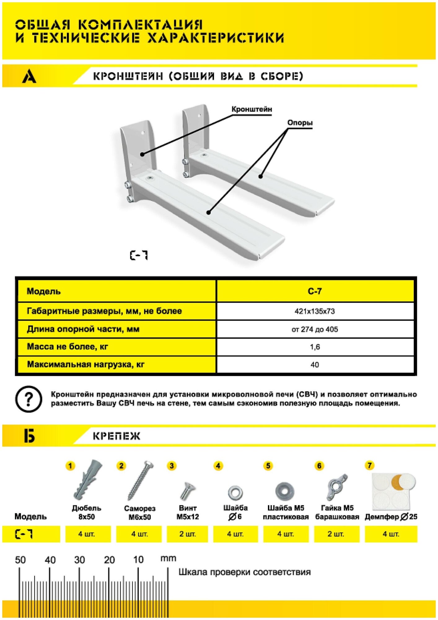 Кронштейн для микроволновой печи СВЧ на стену Trone C-7,белый информация: