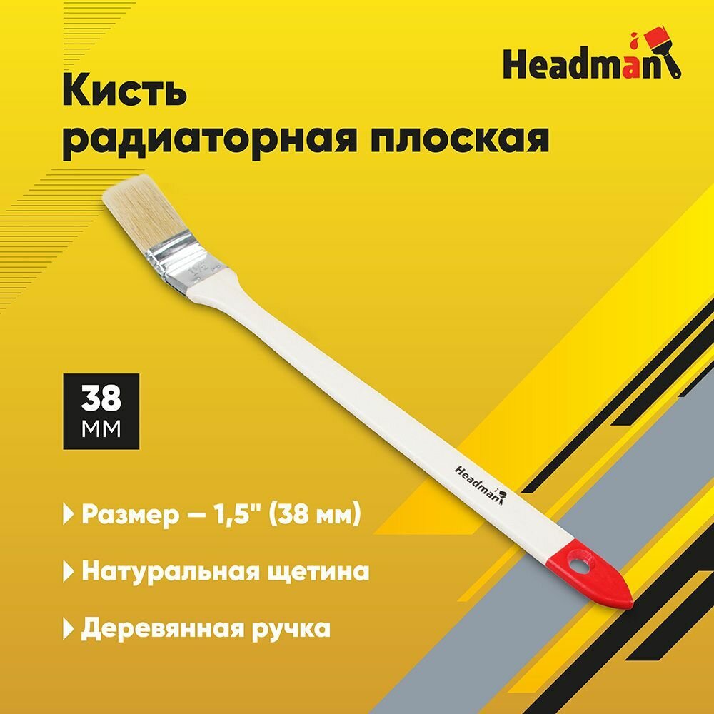 10 цен на Кисть радиаторная плоская нат. щетина 1, 5" (38мм) HEADMAN