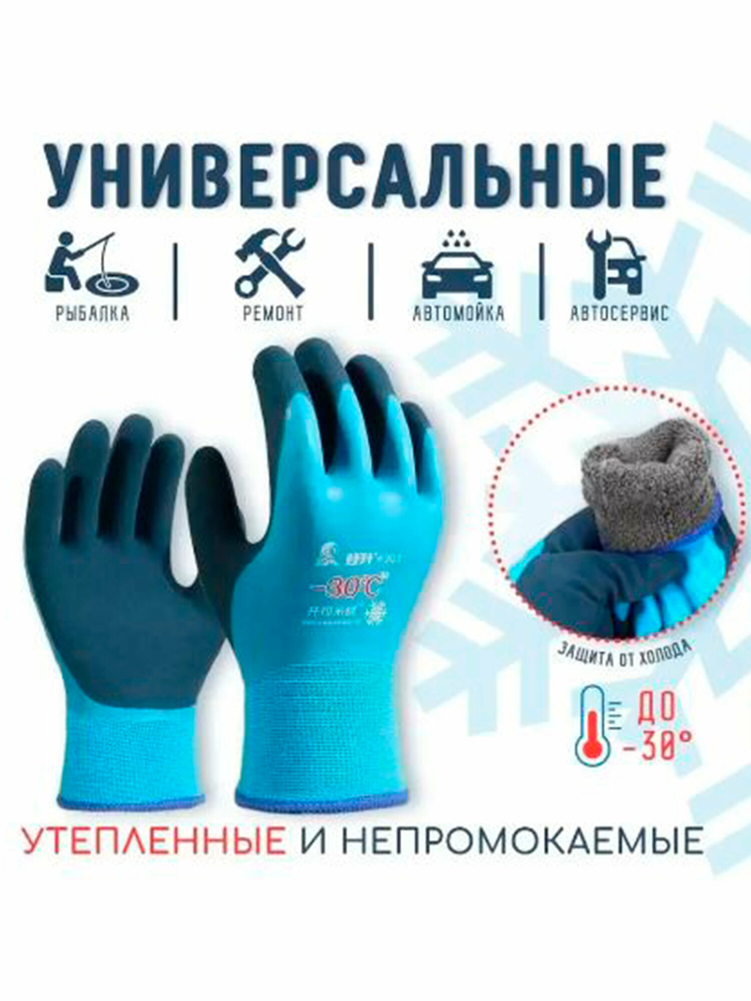 10 цен на Прорезиненные на флисе перчатки синие 10 пар
