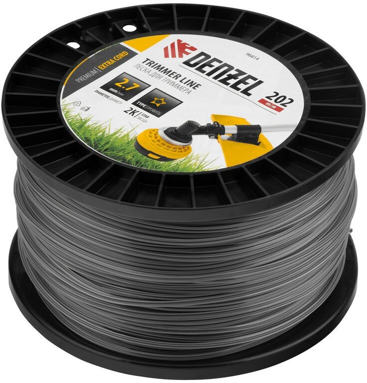 Леска для триммера двухкомпонентная Denzel звезда 2, 7мм х 202м, на DIN катушке EXTRA CORD 96814 информация: