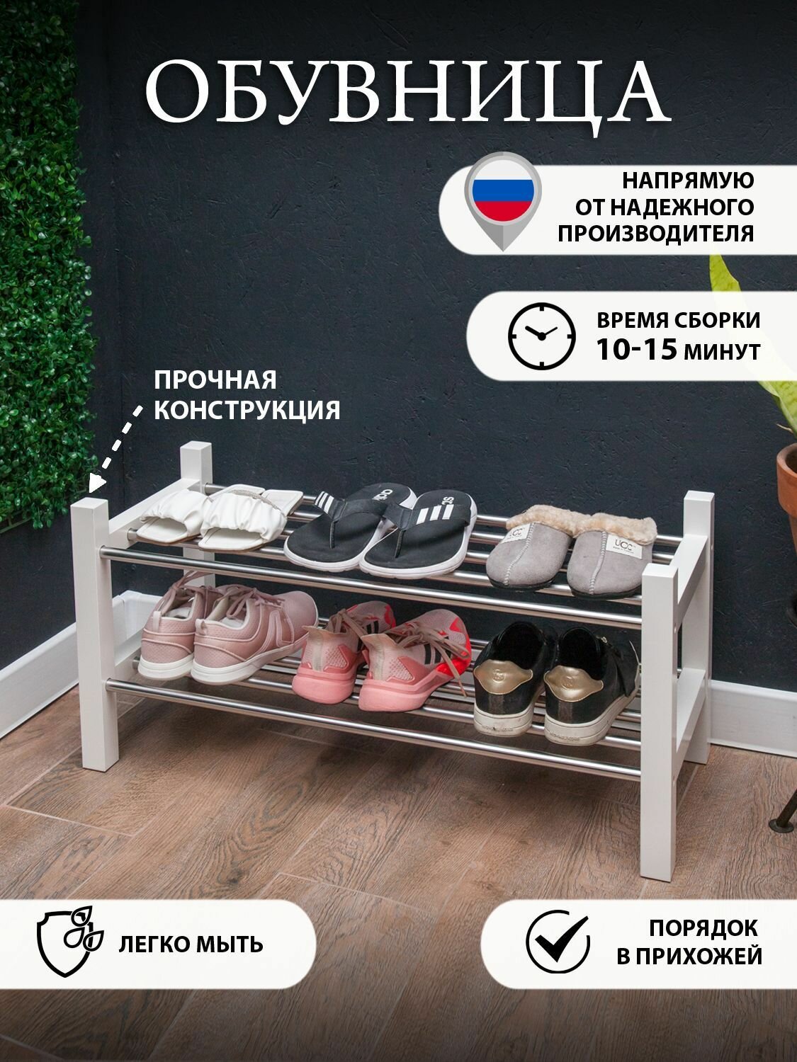 10 цен на Обувница "Порядок" 79х32х37см, 6 отделений, массив дерева, цвет белый
