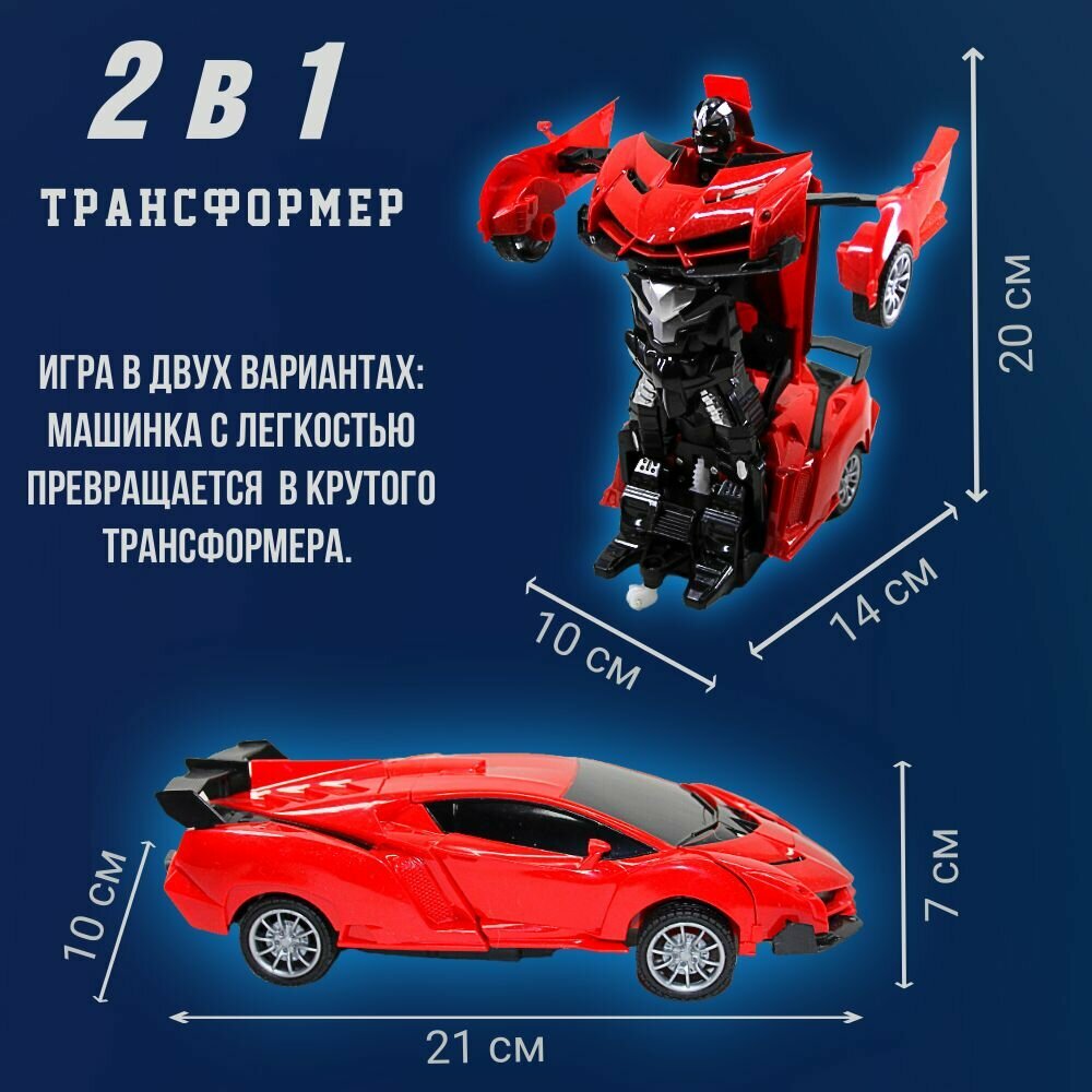 Машинка на пульте управления YOUNG RACER, робот-трансформер спорт кар на батарейках со световыми и звуковыми эффектами, красная гонка