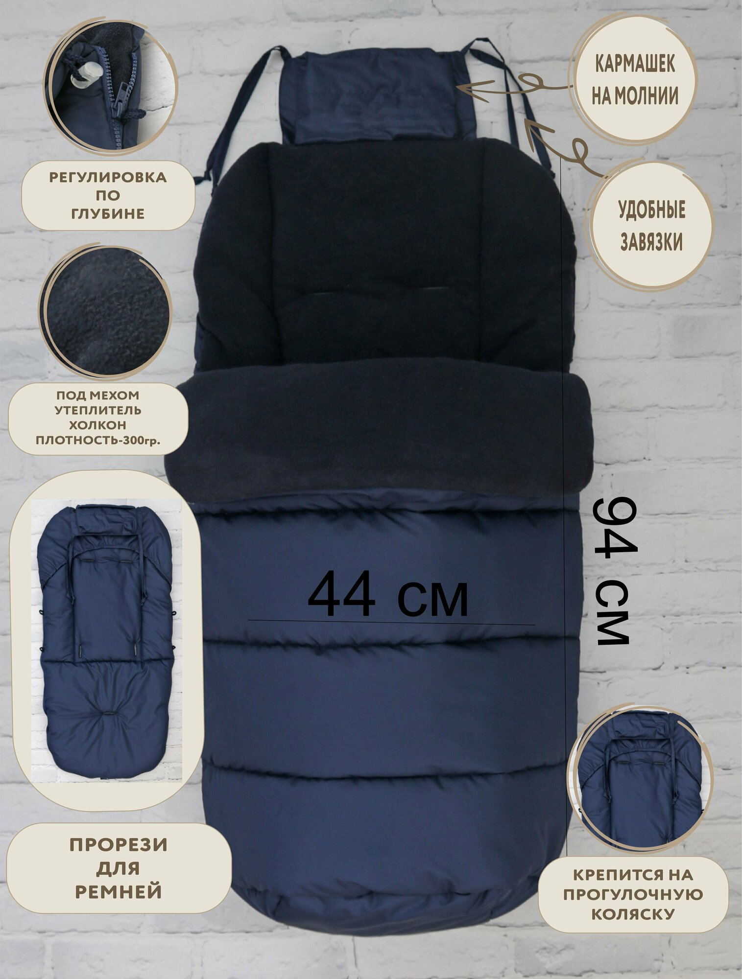 Конверт прогулочный в коляску, автокресло К104-18/56-20/62 - темно-синий информация: