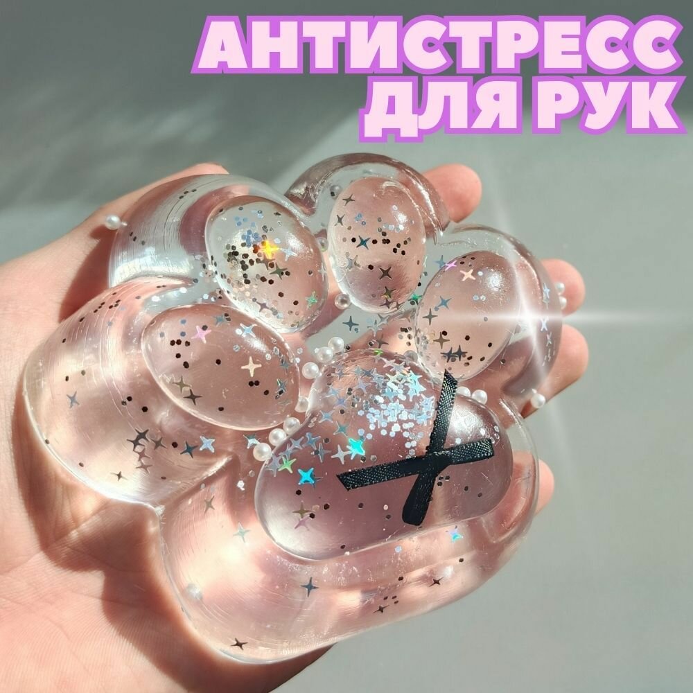 Лапка антистресс с блестками и бантиком , Сквиш лапа 1 450 ₽