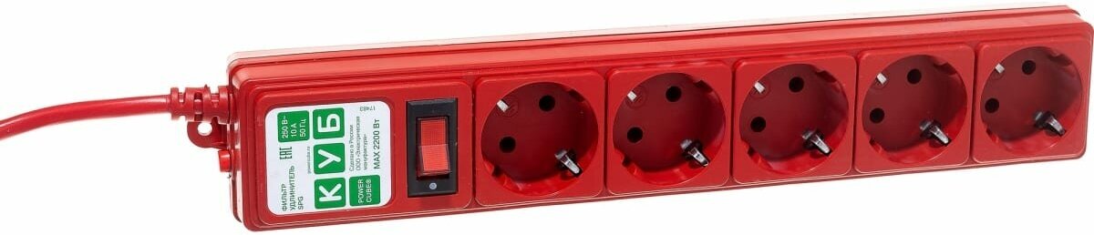 Сетевой фильтр Power Cube 3 м 5 розеток 10А (красный) (SPG-MXTR-14)