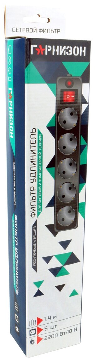 Сетевой фильтр Гарнизон EHLB-5 (5 розеток 1.4м черный) информация: