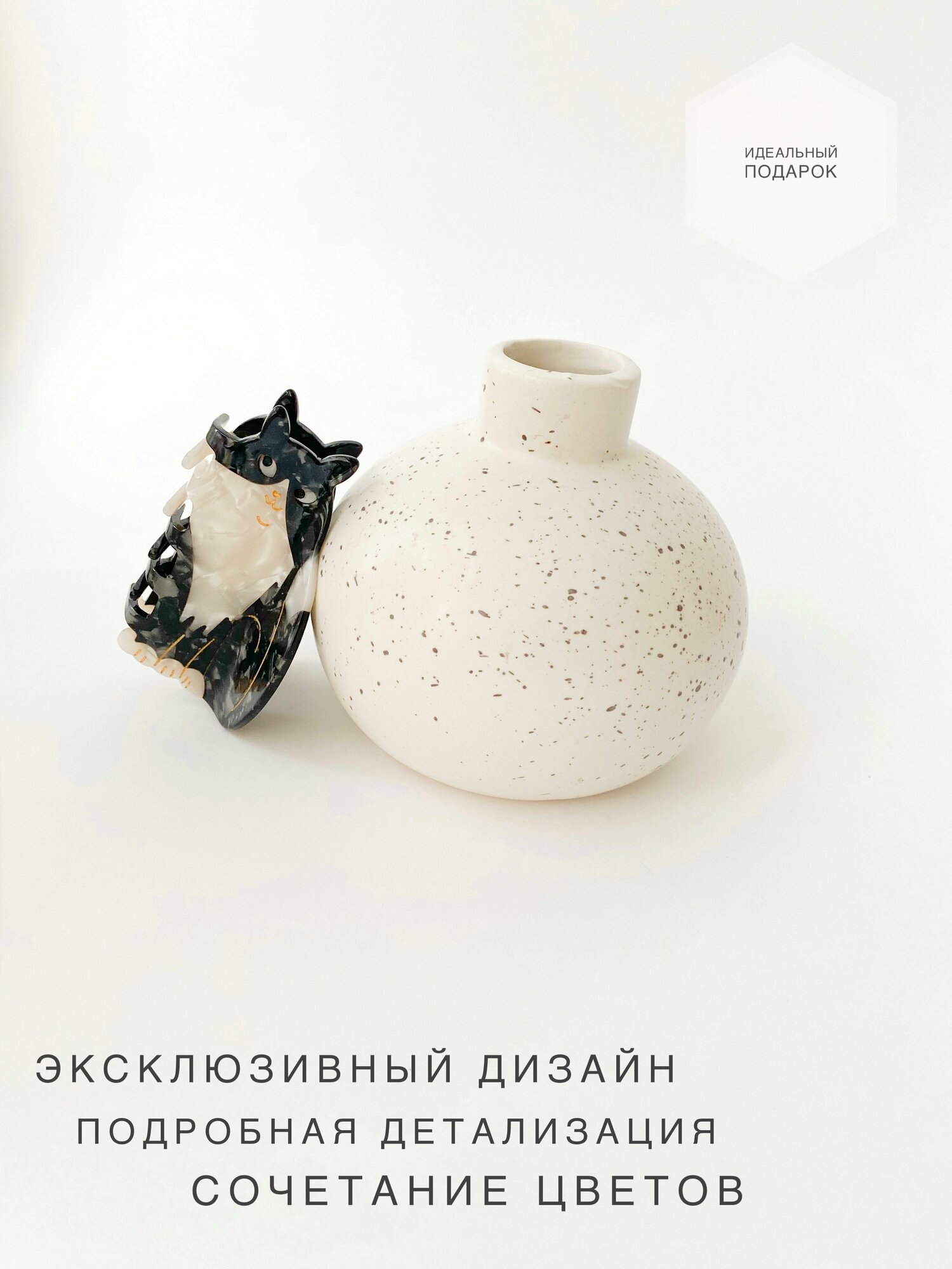 Отзывы на Заколка краб от Accent You, Черно-белая кошка, из ацетата, 1 шт