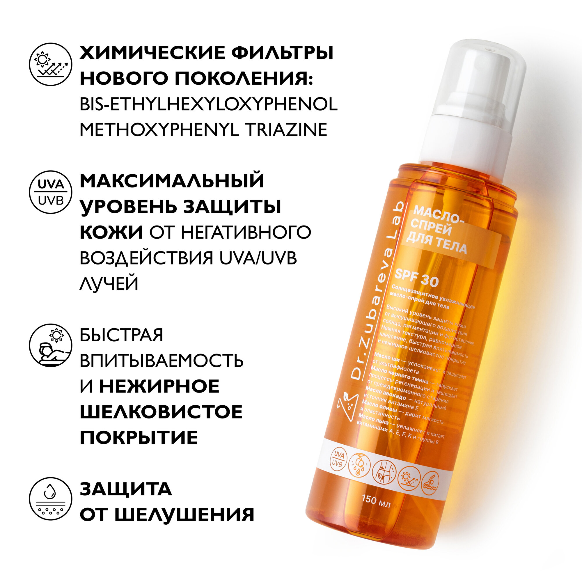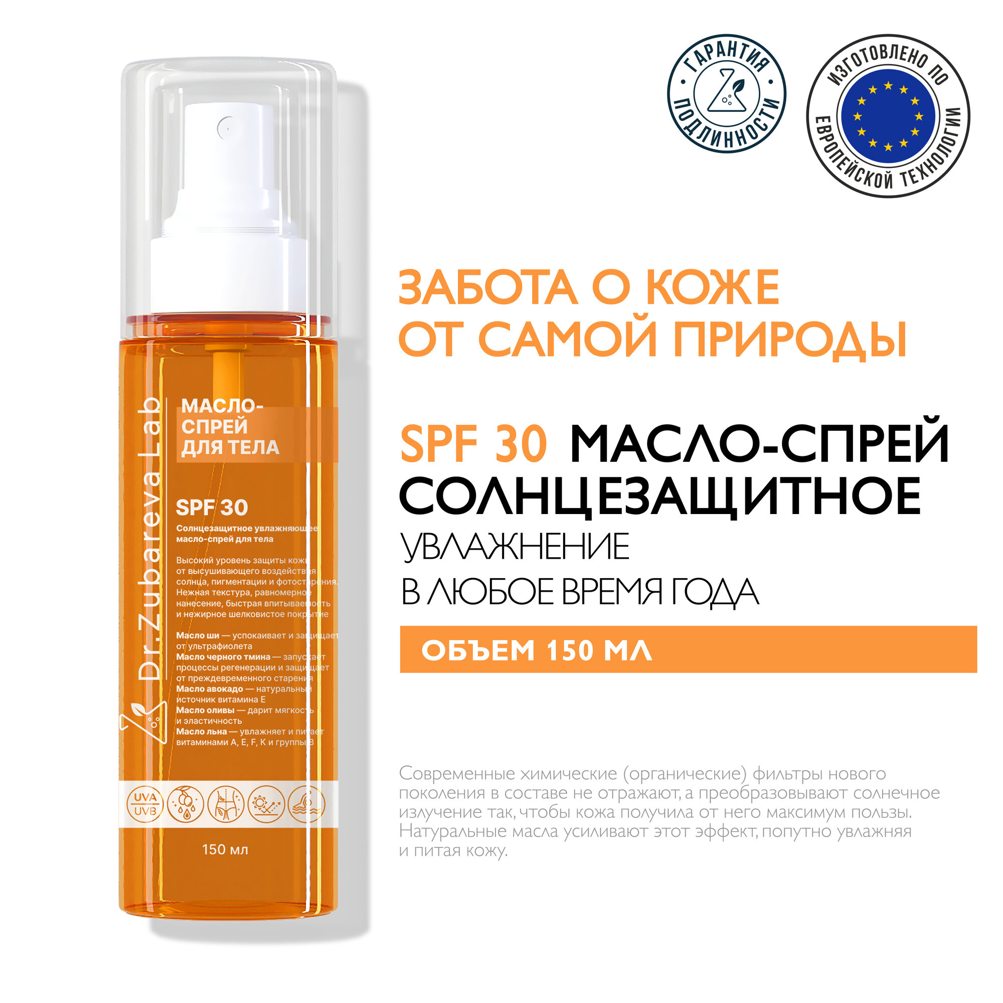 Солнцезащитное масло для тела и волос SPF 30 Dr. Zubareva | Зубарева ( СПФ 30) от доктора Зубарева 150 мл информация: