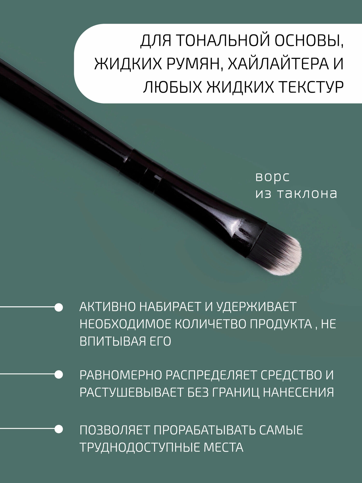 Кисть для нанесения и растушевки жидких текстур теней, хайлайтера, помады, из ворса таклон BTpeeL (155-10-08) информация: