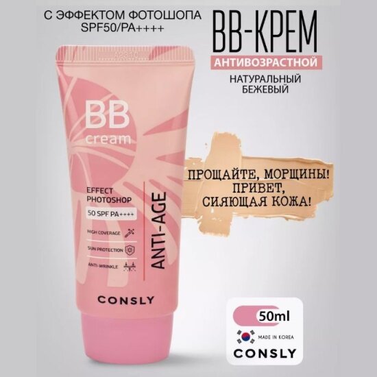 Отзывы на Антивозрастной BB крем Consly с эффектом фотошопа SPF50/PA+ Натуральный бежевый, 50 мл