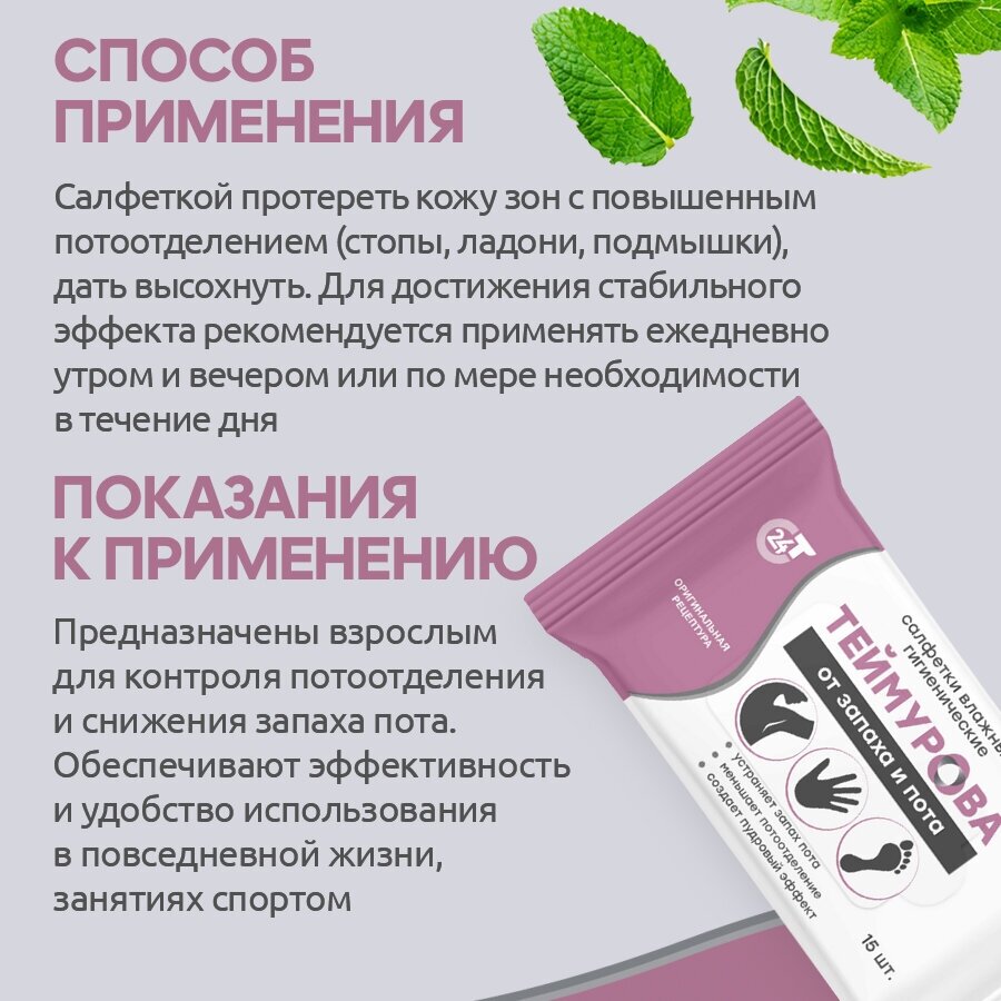 Теймурова салфетки влажные антибактериальные от запаха и пота, 15 шт. информация: