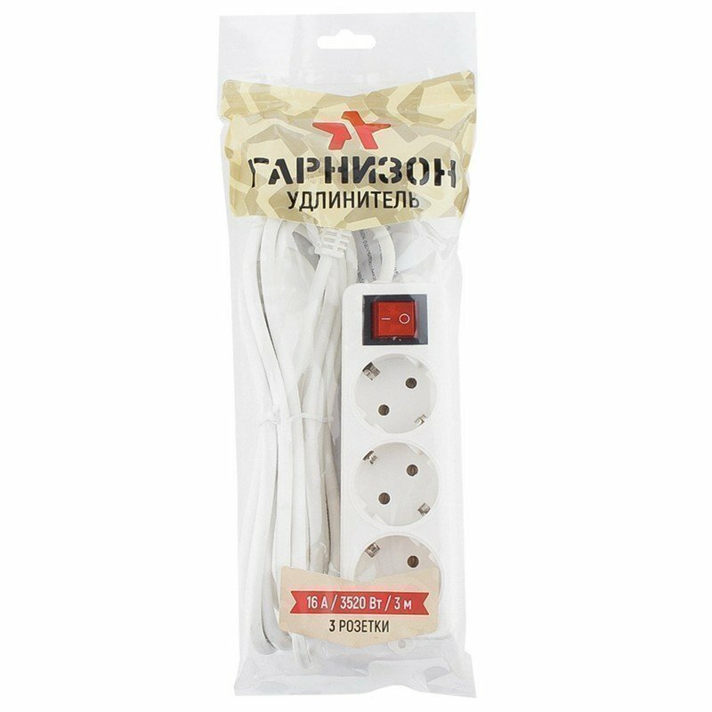 10 цен на Удлинитель гарнизон с выключателем, 3 розетки с заземлением, 3 м, 3х1 мм, 3500 Вт, белый, ELB-G3-W-3 Гарнизон