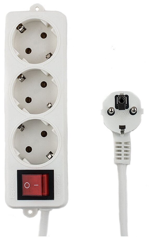 Удлинитель Гарнизон ELB-G3-W-2, 3 евророзетки с выключателем и заземлением, допустимый ток 16 А, длина 2 м