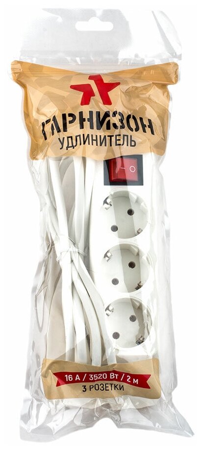 Отзывы на Удлинитель Гарнизон 3 евророзетки с выключателем и заземлением, длина 2м. ELB-G3-W-2