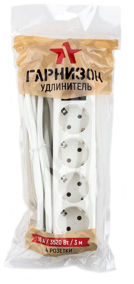 Удлинитель Гарнизон ELB-G4-W-3, 4 розетки, с/з, 16А / 3520 Вт 3 м 4
