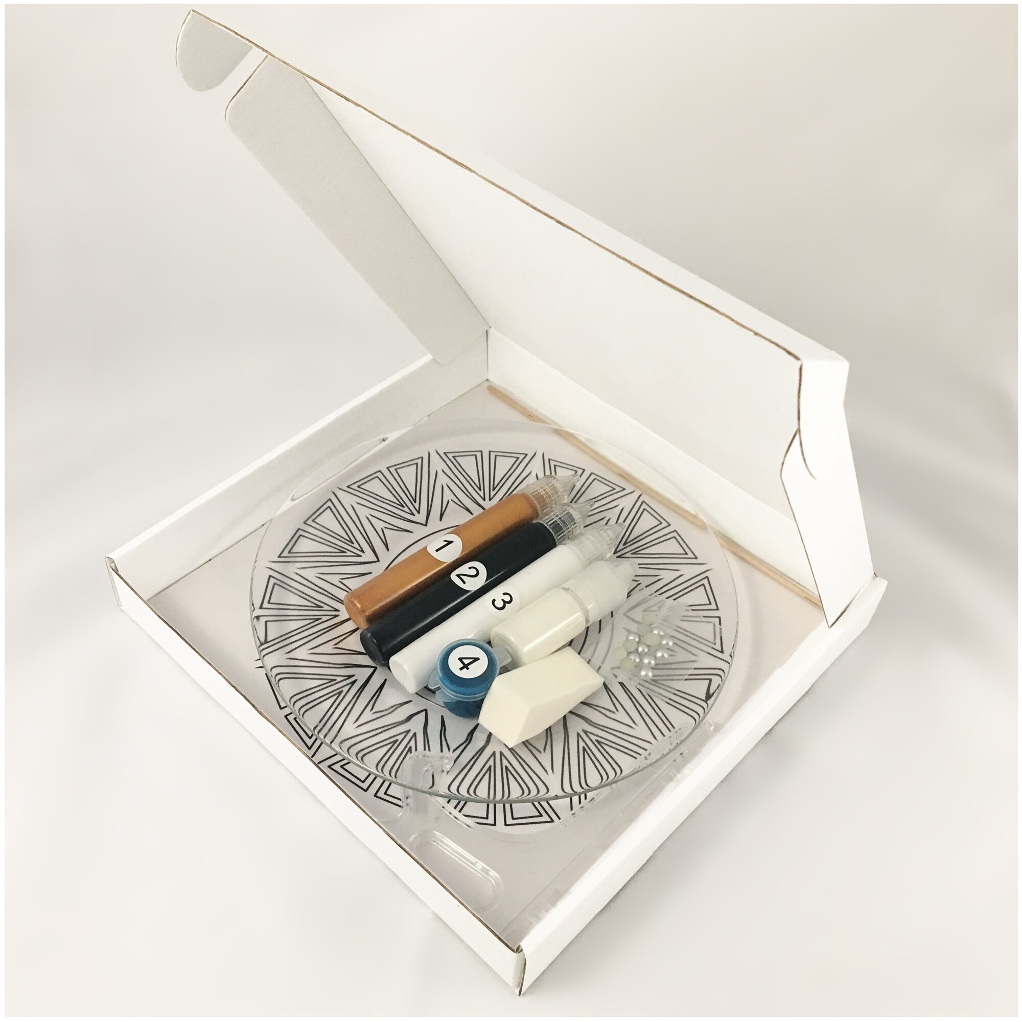 | Дополнительная информация | губка для нанесения фона; бусины 14 штук; клей; подставка для декоративных тарелок; диаметр тарелки 20,5 см |